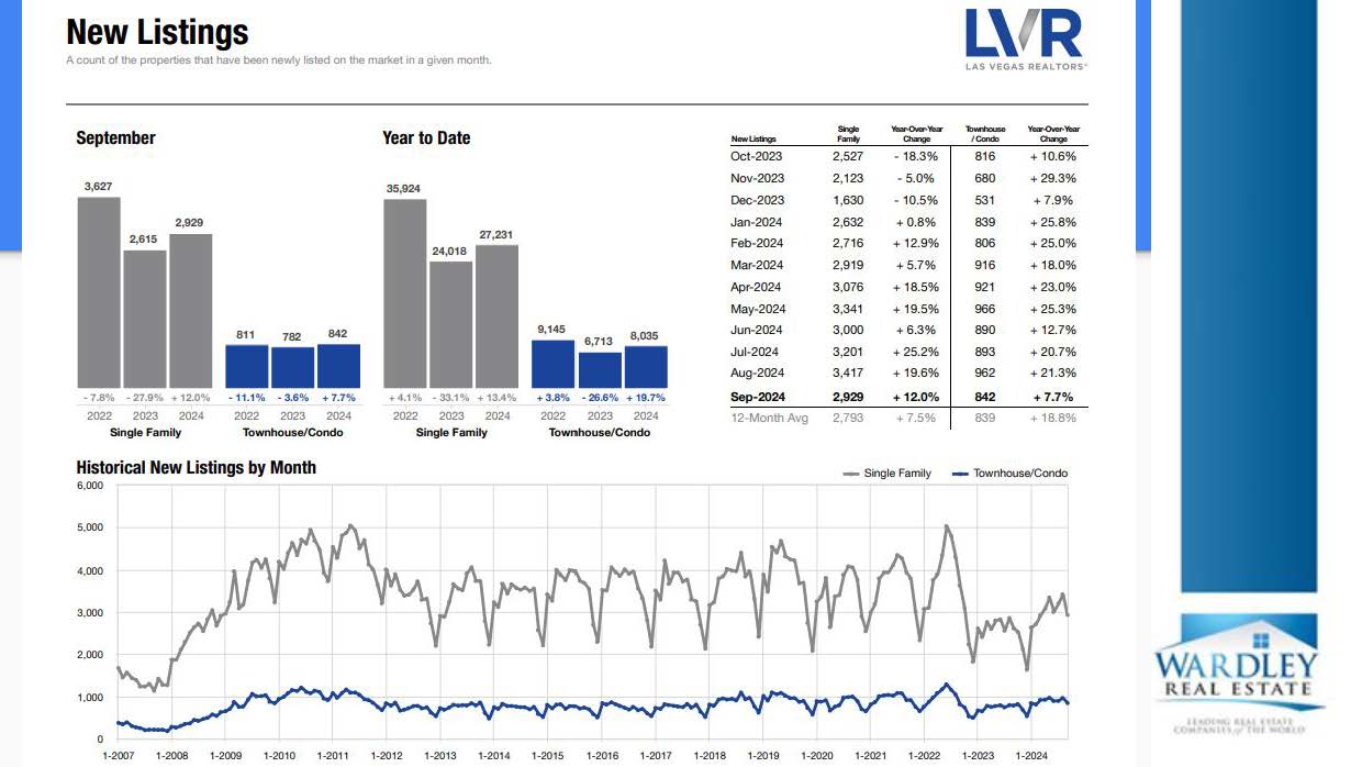 The Las Vegas Valley Real Estate Market received showed several positive signs in September, with New Listings up 12% from the year before and Pending Sales (accepted contracts that have not yet closed) up over 20% from the same time last year.