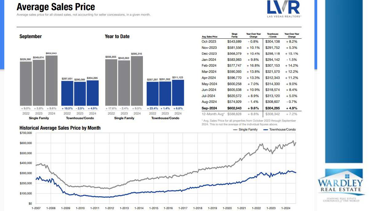 Despite many reports that there would be a major pull back before the election, the Las Vegas Real Estate Market experienced another positive month in October. In a positive sign for Buyers (and an indication that people who've been wanting to sell are finally moving forward) new listings have been going up and creating more options for Buyers. Although homes have been sitting on the market slightly longer (38 days compared to 33 days last October) both the median and average home price have still risen strongly year over year. The median price for a single family home now sits at $475,788 (a 5.7% increase over last year) and the average price sits at $585,762, and while those numbers can fluctuate monthly, our market is well above the national average.