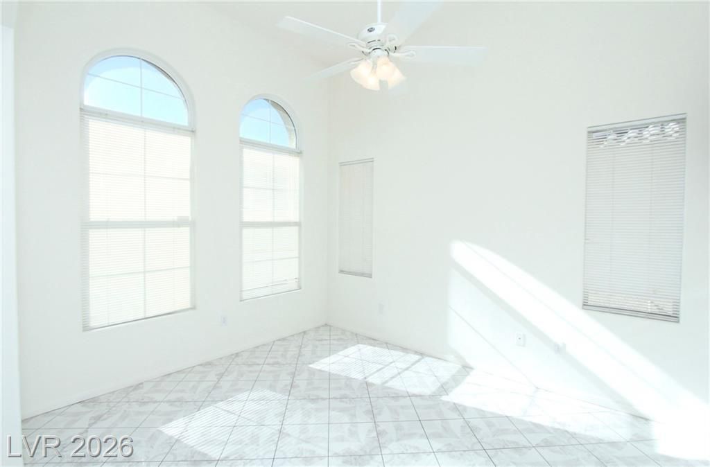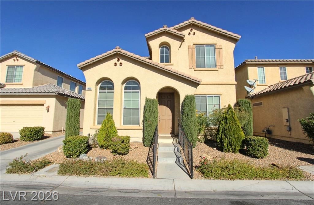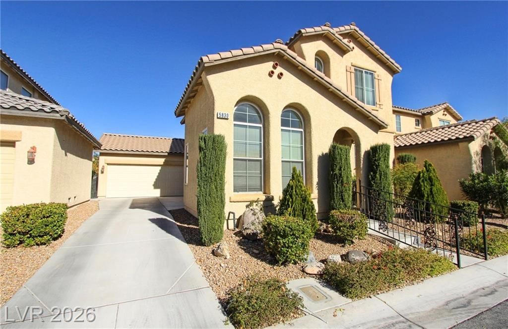 Fantastic 1,805 sq. ft. residence located in a desirable Southwest Las Vegas community. This home features a spacious, open-concept floor plan with durable tile flooring spanning the entire downstairs area. The heart of the home is an island kitchen designed with custom cabinetry and ample storage space for all your culinary needs. Upstairs, the oversized primary suite serves as a true getaway, complete with a large walk-in closet. The outdoor space is a highlight of the property, featuring a tranquil rear yard retreat with premium stamped concrete?perfect for relaxing or outdoor dining. Additional features include a 2-car garage equipped with built-in cabinets for organized storage. Located near a community park.